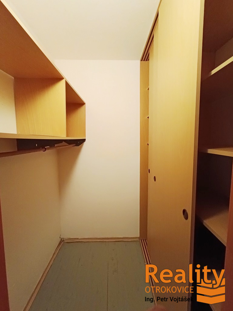 • Samostatná šatna s vestavnou skříní přímo v bytě